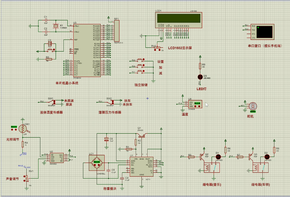 注意:部分实物元器件仿真中没有,仿真中会用其他工作原理相似的元件代替,这样可能导致实物程序和仿真程序不一样
