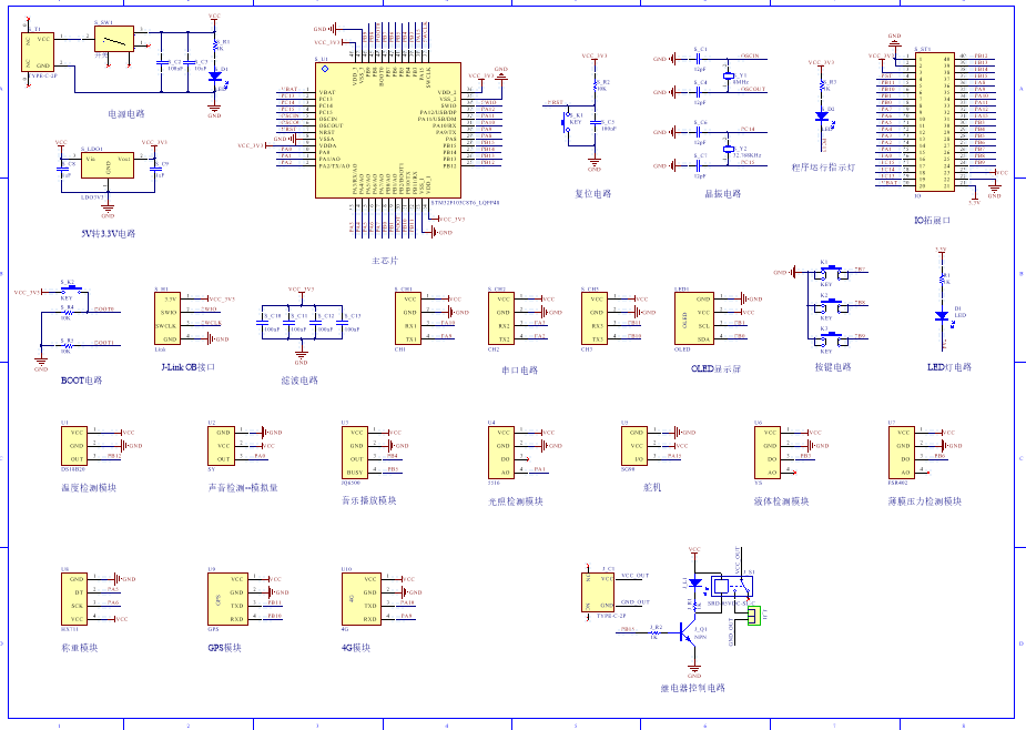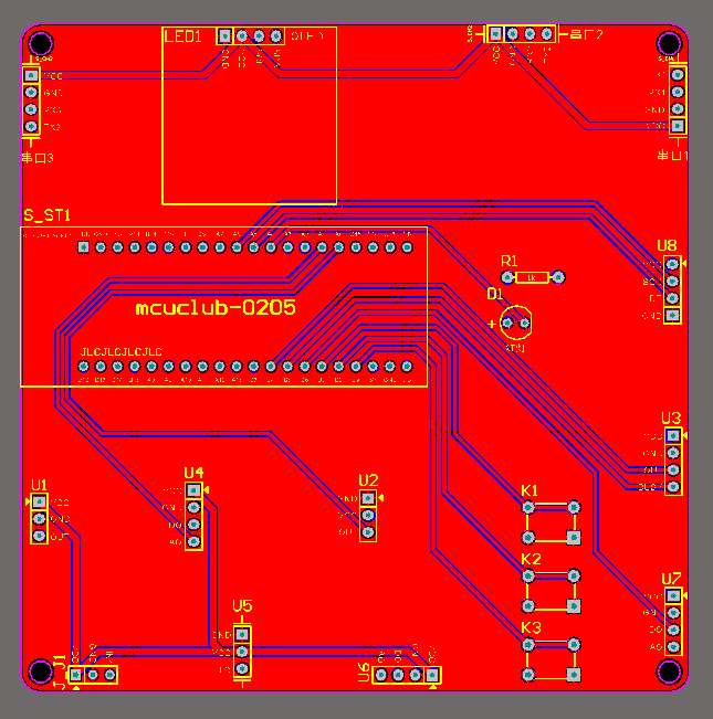 PCB图是由原理图导出,封装很大一部分都是作者自己绘制,不提供封装库,只提供连接好的源文件,可以直接在嘉立创进行打板。两层板,上下覆铜接地。