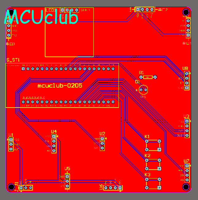 注意:PCB图中间有一个项目编号,隐藏在单片机底座下,插入单片机后不会看到。如果想截没有项目编号的PCB图,可在PCB源文件中点击删除。另外,如果想在实物PCB板上加自己的信息(比如日期、学号、姓名等),可联系客服。