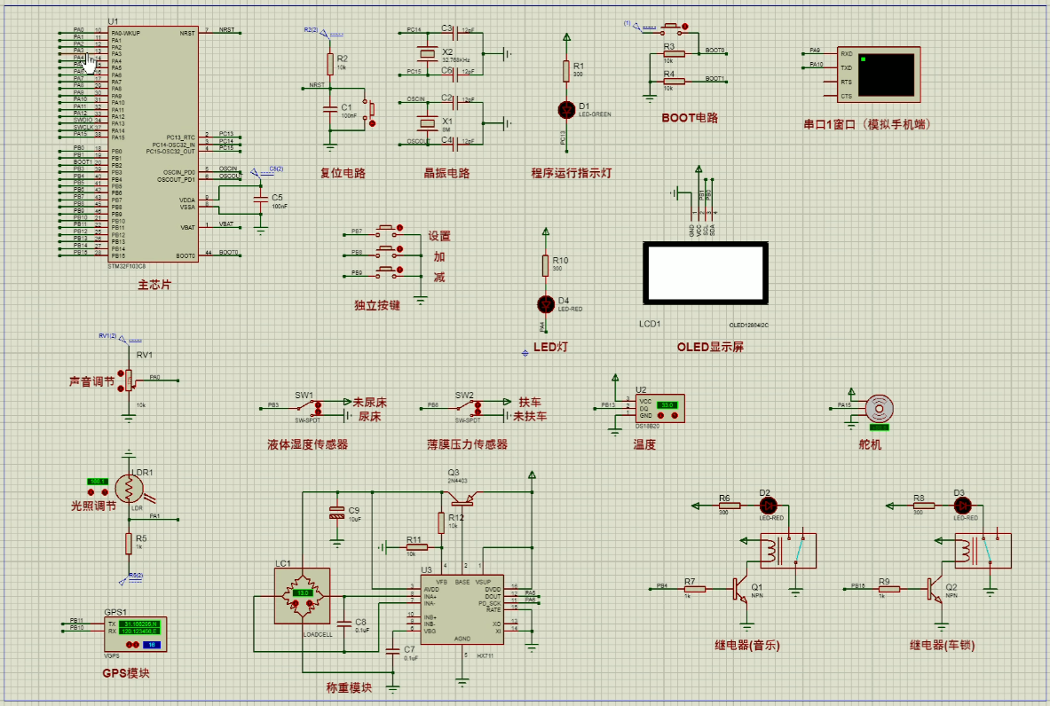 注意:部分实物元器件仿真中没有,仿真中会用其他工作原理相似的元件代替,这样可能导致实物程序和仿真程序不一样