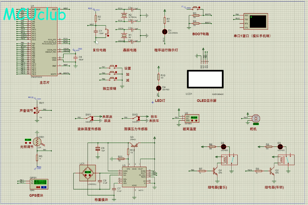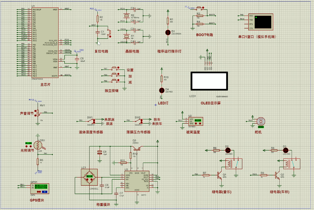 注意:部分实物元器件仿真中没有,仿真中会用其他工作原理相似的元件代替,这样可能导致实物程序和仿真程序不一样