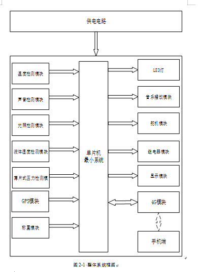 1、通过防水式温度传感器检测婴儿被窝内温度,当温度过高或过低时,LED灯闪烁提醒