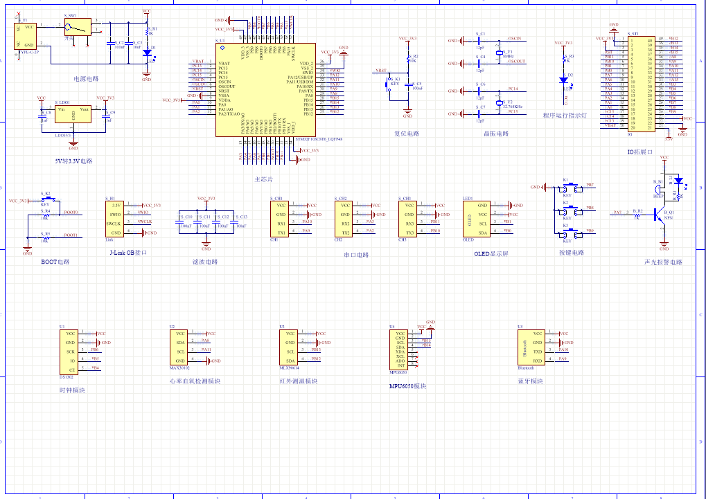 PCB图是由原理图导出,封装很大一部分都是作者自己绘制,不提供封装库,只提供连接好的源文件,可以直接在嘉立创进行打板。两层板,上下覆铜接地。