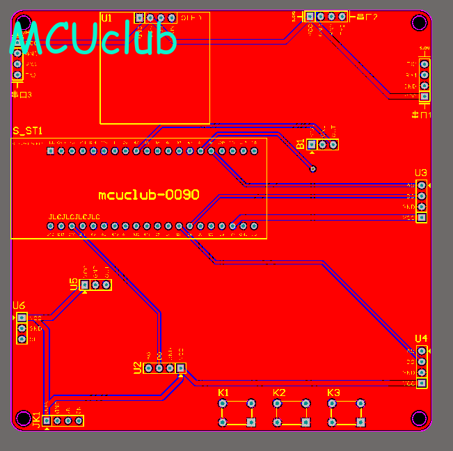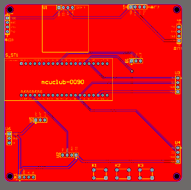 注意:PCB图中间有一个项目编号,隐藏在单片机底座下,插入单片机后不会看到。如果想截没有项目编号的PCB图,可在PCB源文件中点击删除。另外,如果想在实物PCB板上加自己的信息(比如日期、学号、姓名等),可联系客服。