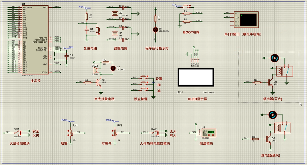 注意:部分实物元器件仿真中没有,仿真中会用其他工作原理相似的元件代替,这样可能导致实物程序和仿真程序不一样