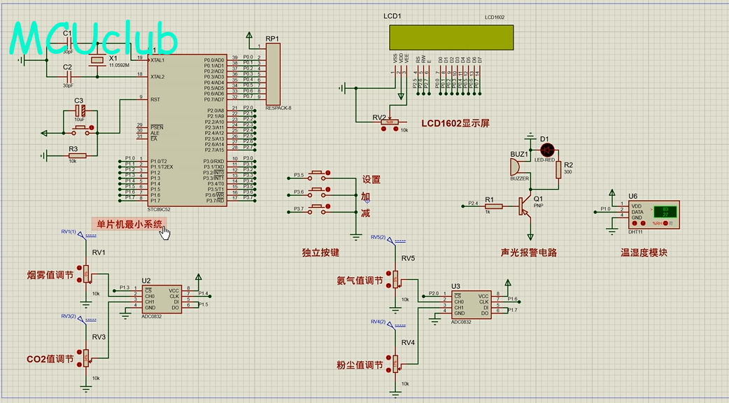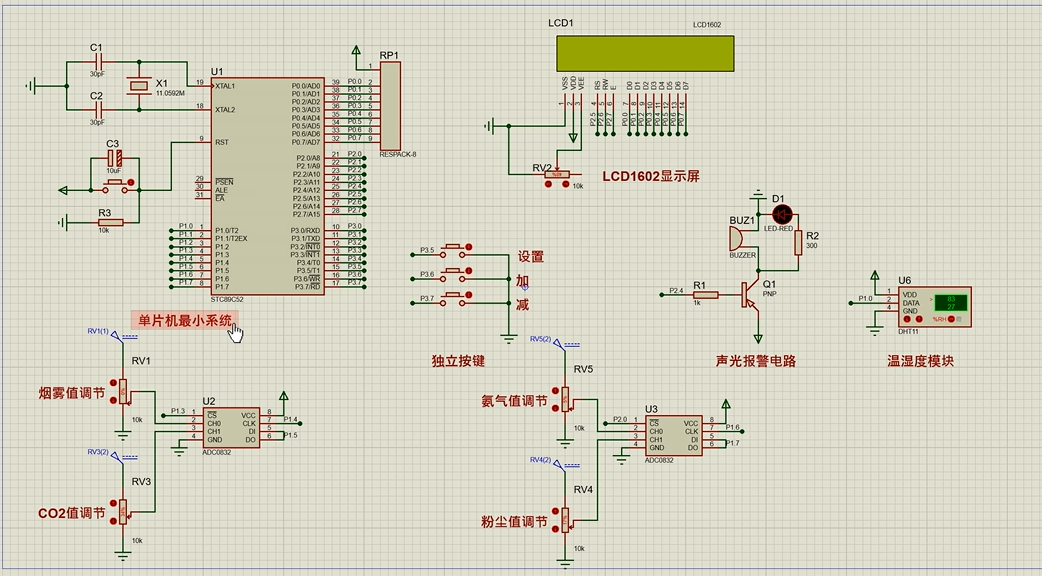 注意:部分实物元器件仿真中没有,仿真中会用其他工作原理相似的元件代替,这样可能导致实物程序和仿真程序不一样