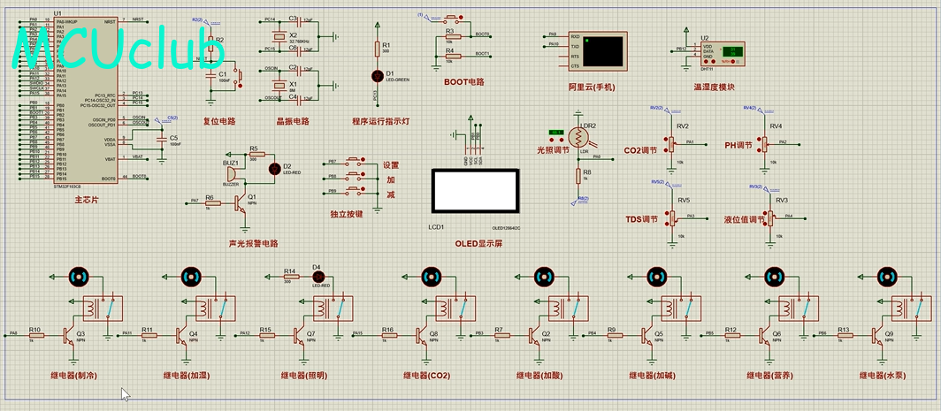 7、通过按键设置最大值、控制制冷、加湿、补光、酸碱、营养物质、水泵开关;