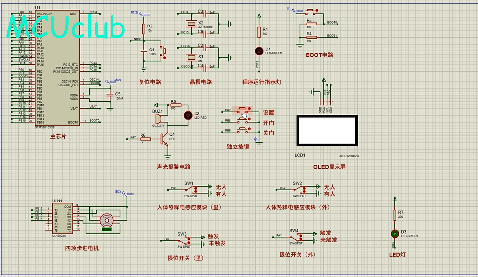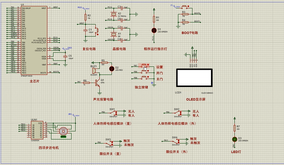 4、通过OLED显示屏显示当前们内外是否有人及其门的状态;