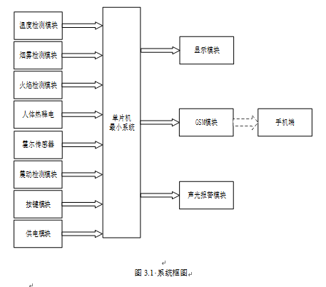 2、通过烟雾监测模块监测当前环境的烟雾,监测到烟雾大于最大值声光报警,通过GSM进行短信的发送;