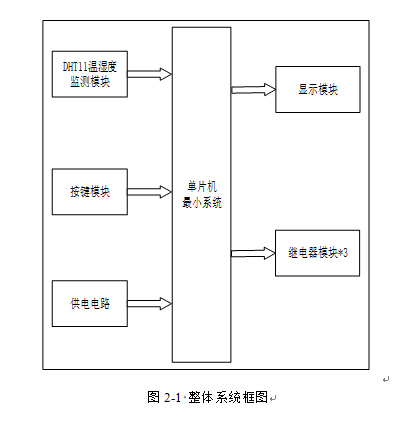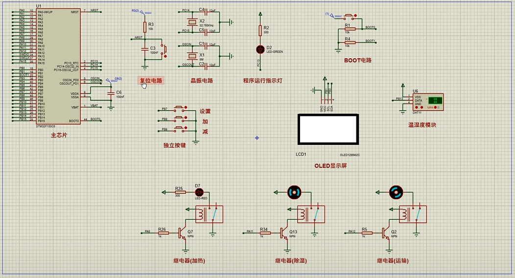 2、通过按键设置定时烘干时间、加热时间、温度最大值、湿度最大值、启停系统;