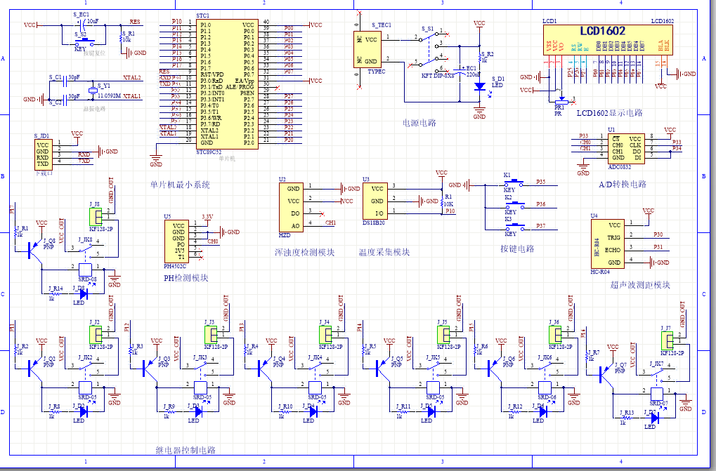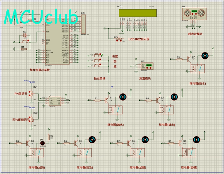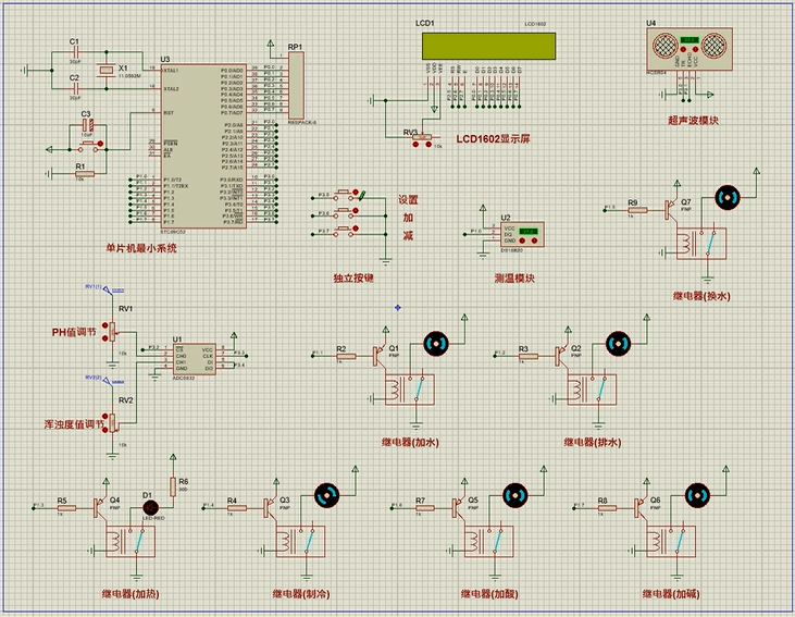 1、通过超声波检测鱼缸水位,低于设置最小值,进行加水,高于设置最大值,进行排水;