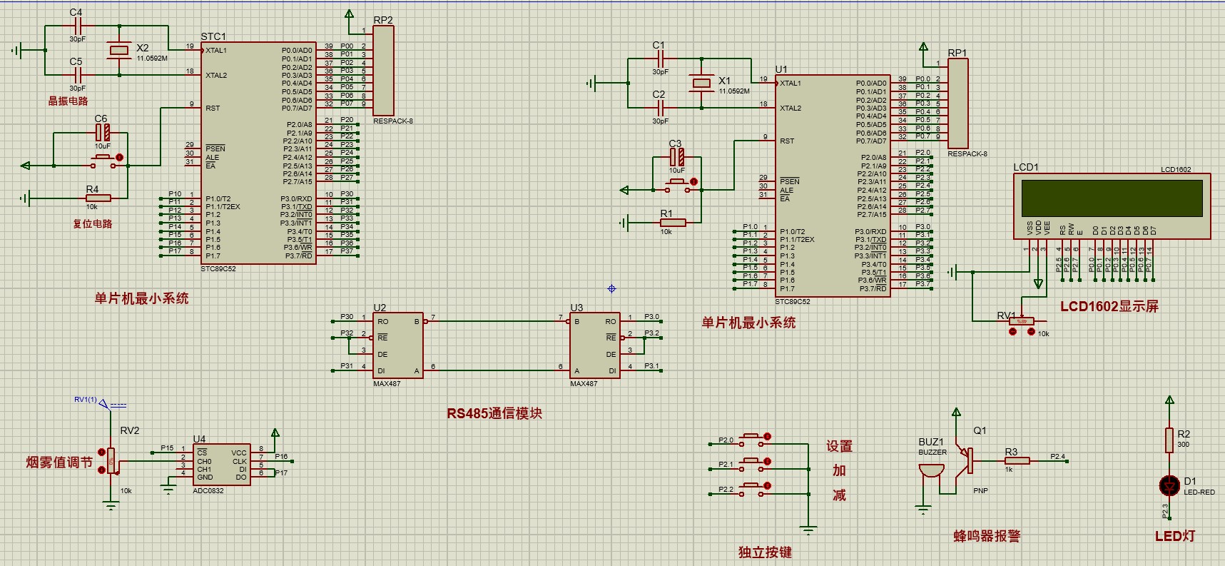 注意:部分实物元器件仿真中没有,仿真中会用其他工作原理相似的元件代替,这样可能导致实物程序和仿真程序不一样