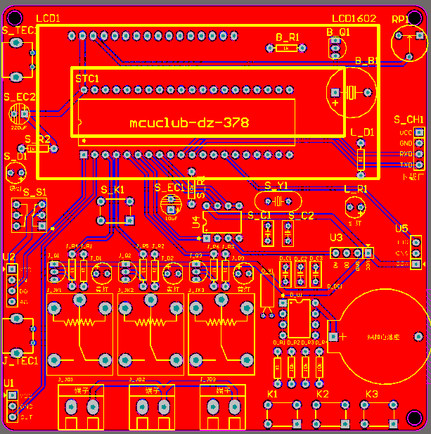 注意:PCB图中间有一个项目编号,隐藏在单片机底座下,插入单片机后不会看到。如果想截没有项目编号的PCB图,可在PCB源文件中点击删除。另外,如果想在实物PCB板上加自己的信息(比如日期、学号、姓名等),可联系客服。