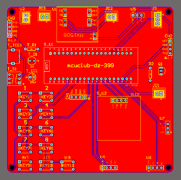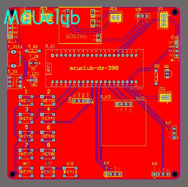注意:PCB图中间有一个项目编号,隐藏在单片机底座下,插入单片机后不会看到。如果想截没有项目编号的PCB图,可在PCB源文件中点击删除。另外,如果想在实物PCB板上加自己的信息(比如日期、学号、姓名等),可联系客服。