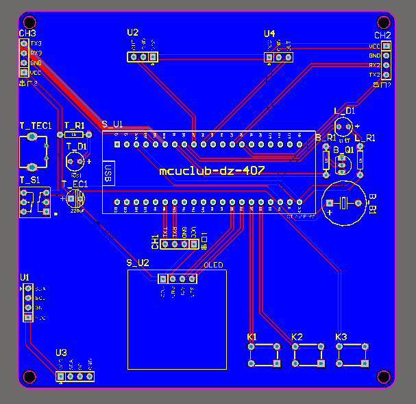 注意:PCB图中间有一个项目编号,隐藏在单片机底座下,插入单片机后不会看到。如果想截没有项目编号的PCB图,可在PCB源文件中点击删除。另外,如果想在实物PCB板上加自己的信息(比如日期、学号、姓名等),可联系客服。