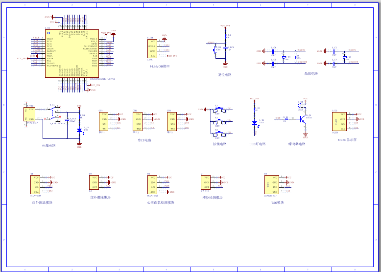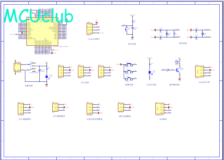 PCB图是由原理图导出,封装很大一部分都是作者自己绘制,不提供封装库,只提供连接好的源文件,可以直接在嘉立创进行打板。两层板,上下覆铜接地。