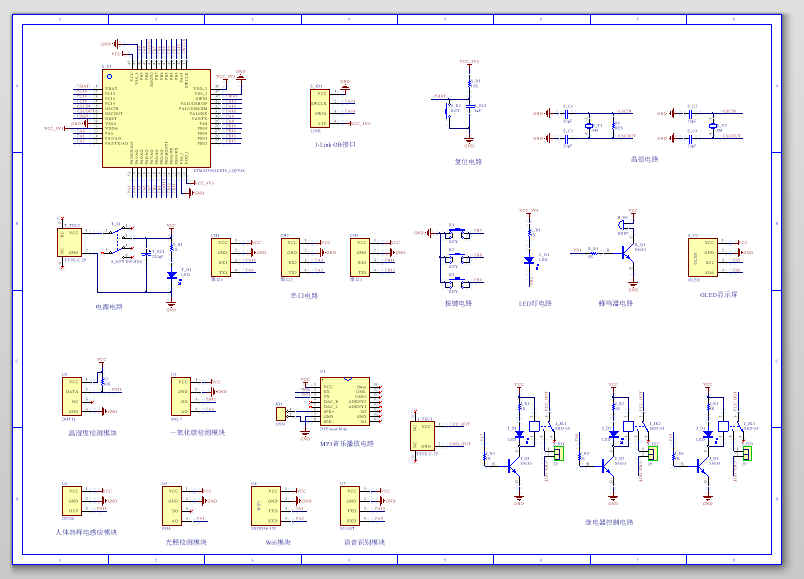 PCB图是由原理图导出,封装很大一部分都是作者自己绘制,不提供封装库,只提供连接好的源文件,可以直接在嘉立创进行打板。两层板,上下覆铜接地。