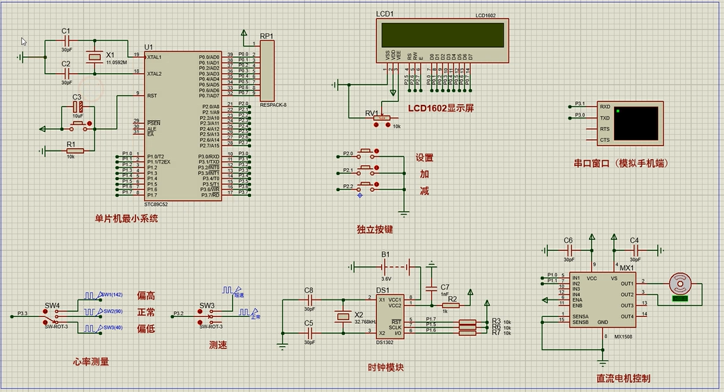 注意:部分实物元器件仿真中没有,仿真中会用其他工作原理相似的元件代替,这样可能导致实物程序和仿真程序不一样