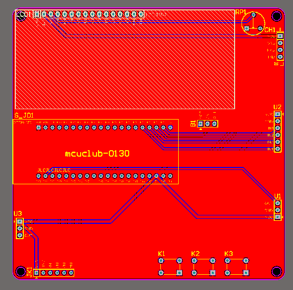 注意:PCB图中间有一个项目编号,隐藏在单片机底座下,插入单片机后不会看到。如果想截没有项目编号的PCB图,可在PCB源文件中点击删除。另外,如果想在实物PCB板上加自己的信息(比如日期、学号、姓名等),可联系客服。