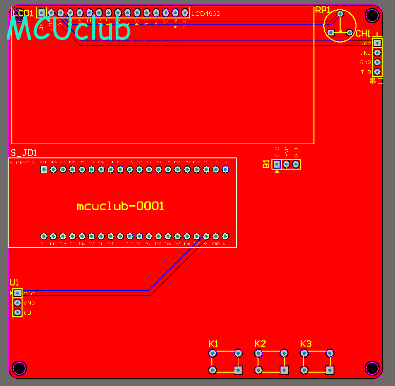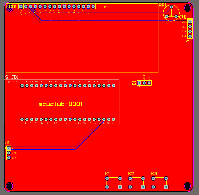 注意:PCB图中间有一个项目编号,隐藏在单片机底座下,插入单片机后不会看到。如果想截没有项目编号的PCB图,可在PCB源文件中点击删除。另外,如果想在实物PCB板上加自己的信息(比如日期、学号、姓名等),可联系客服。