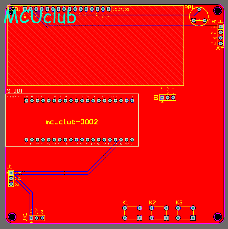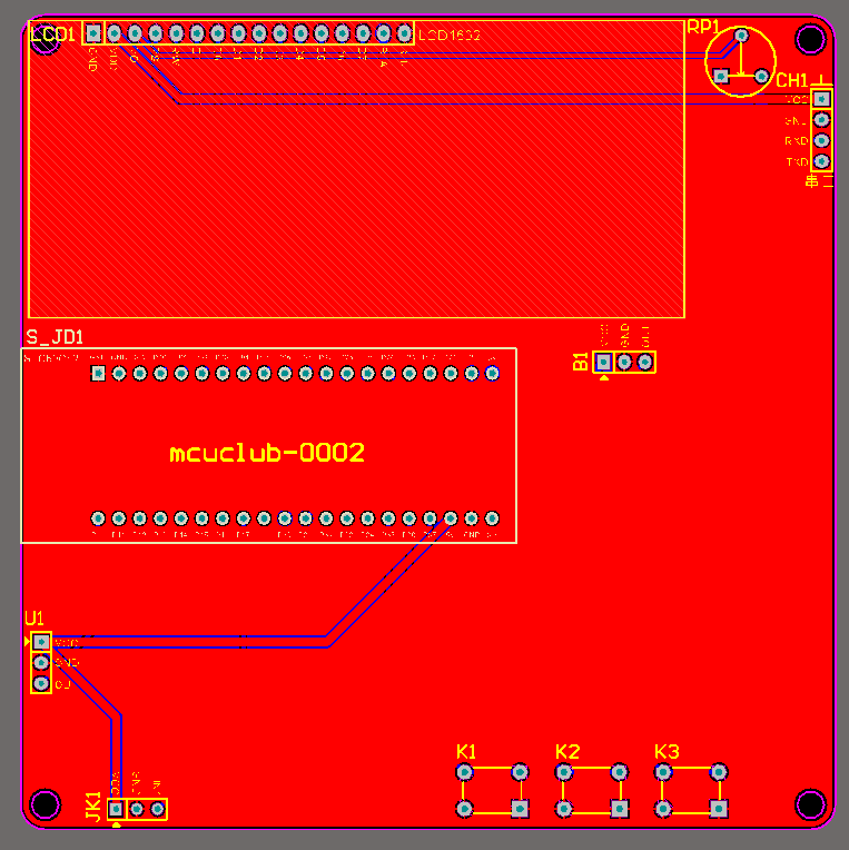 注意:PCB图中间有一个项目编号,隐藏在单片机底座下,插入单片机后不会看到。如果想截没有项目编号的PCB图,可在PCB源文件中点击删除。另外,如果想在实物PCB板上加自己的信息(比如日期、学号、姓名等),可联系客服。