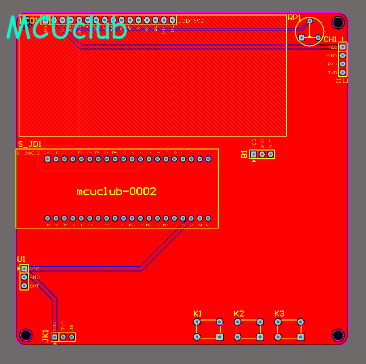 注意:PCB图中间有一个项目编号,隐藏在单片机底座下,插入单片机后不会看到。如果想截没有项目编号的PCB图,可在PCB源文件中点击删除。另外,如果想在实物PCB板上加自己的信息(比如日期、学号、姓名等),可联系客服。