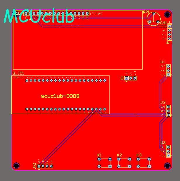 注意:PCB图中间有一个项目编号,隐藏在单片机底座下,插入单片机后不会看到。如果想截没有项目编号的PCB图,可在PCB源文件中点击删除。另外,如果想在实物PCB板上加自己的信息(比如日期、学号、姓名等),可联系客服。