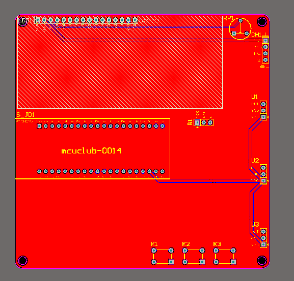 注意:PCB图中间有一个项目编号,隐藏在单片机底座下,插入单片机后不会看到。如果想截没有项目编号的PCB图,可在PCB源文件中点击删除。另外,如果想在实物PCB板上加自己的信息(比如日期、学号、姓名等),可联系客服。