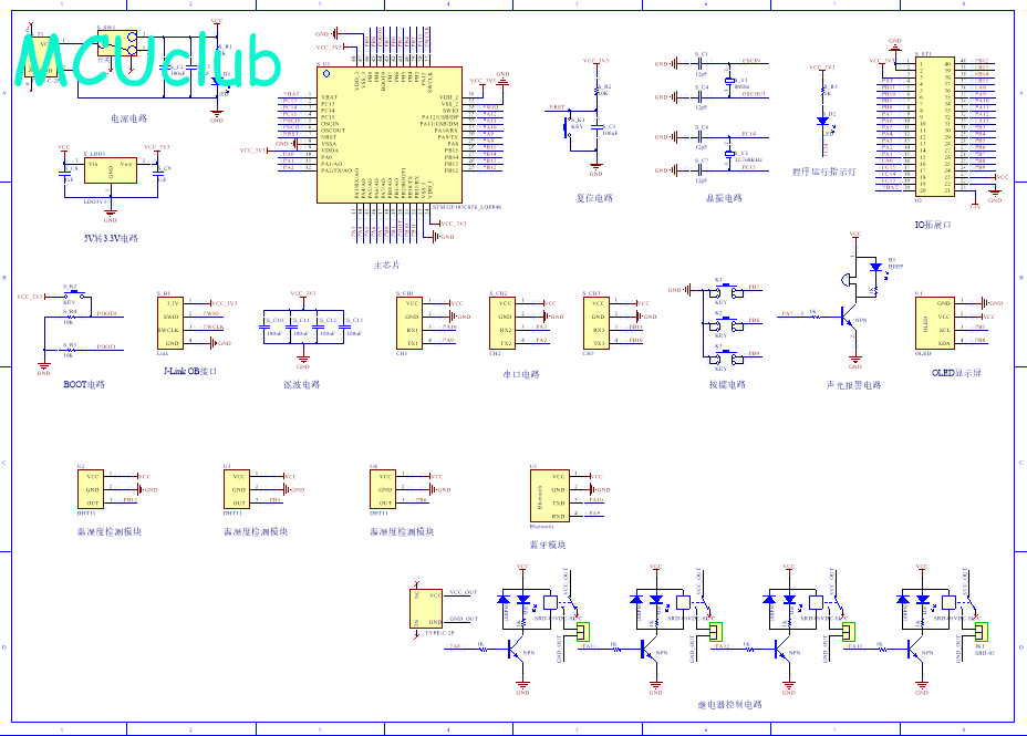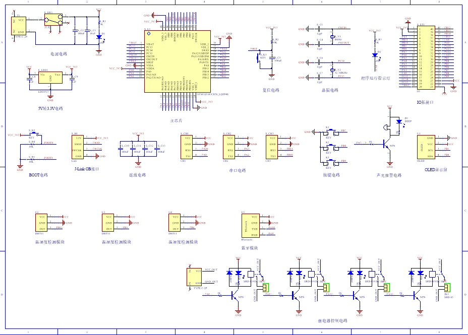 PCB图是由原理图导出,封装很大一部分都是作者自己绘制,不提供封装库,只提供连接好的源文件,可以直接在嘉立创进行打板。两层板,上下覆铜接地。