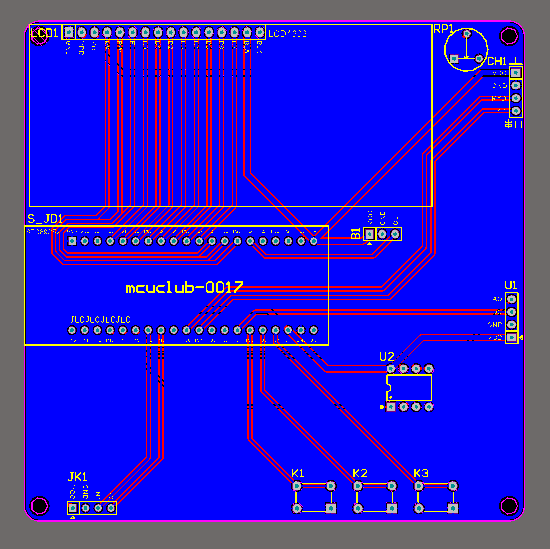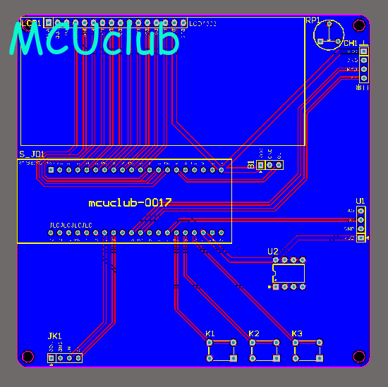 注意:PCB图中间有一个项目编号,隐藏在单片机底座下,插入单片机后不会看到。如果想截没有项目编号的PCB图,可在PCB源文件中点击删除。另外,如果想在实物PCB板上加自己的信息(比如日期、学号、姓名等),可联系客服。