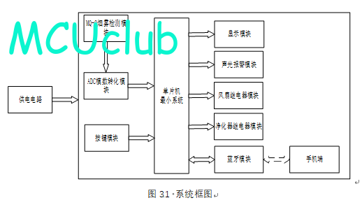 2、通过按键设置烟雾最大值,另外,当烟雾值小于等于设置最大值时,可手动控制风扇或净化器开关