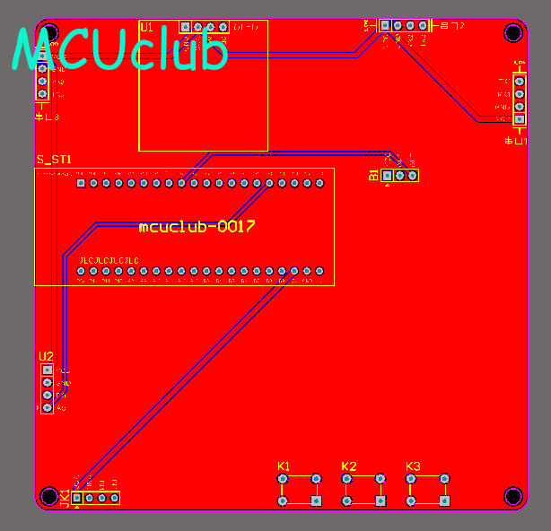 注意:PCB图中间有一个项目编号,隐藏在单片机底座下,插入单片机后不会看到。如果想截没有项目编号的PCB图,可在PCB源文件中点击删除。另外,如果想在实物PCB板上加自己的信息(比如日期、学号、姓名等),可联系客服。