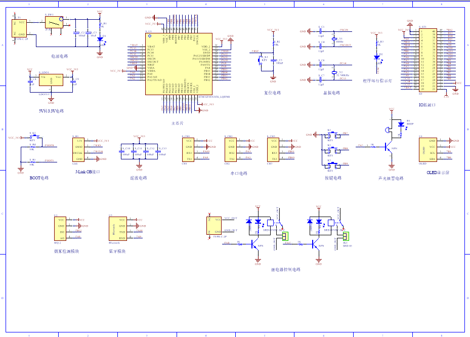 PCB图是由原理图导出,封装很大一部分都是作者自己绘制,不提供封装库,只提供连接好的源文件,可以直接在嘉立创进行打板。两层板,上下覆铜接地。