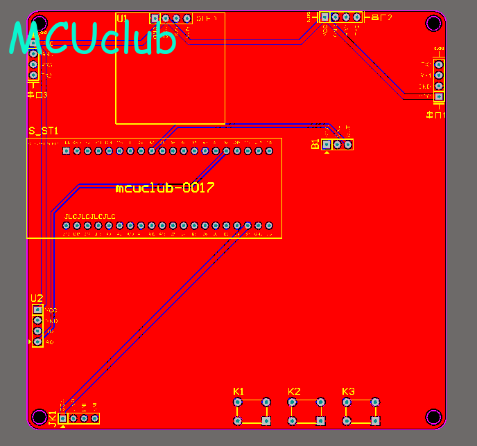 注意:PCB图中间有一个项目编号,隐藏在单片机底座下,插入单片机后不会看到。如果想截没有项目编号的PCB图,可在PCB源文件中点击删除。另外,如果想在实物PCB板上加自己的信息(比如日期、学号、姓名等),可联系客服。