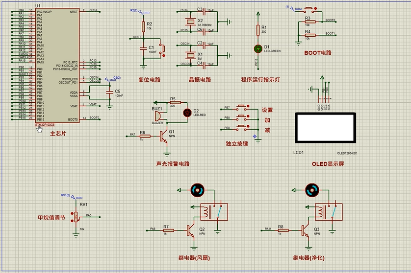 2、通过按键设置甲烷最大值,另外,当甲烷值小于等于设置最大值时,可手动控制风扇或净化器开关