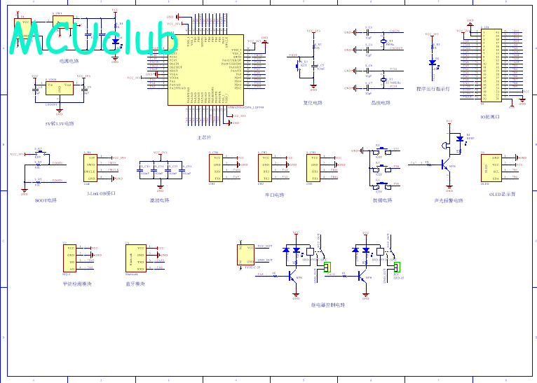 PCB图是由原理图导出,封装很大一部分都是作者自己绘制,不提供封装库,只提供连接好的源文件,可以直接在嘉立创进行打板。两层板,上下覆铜接地。