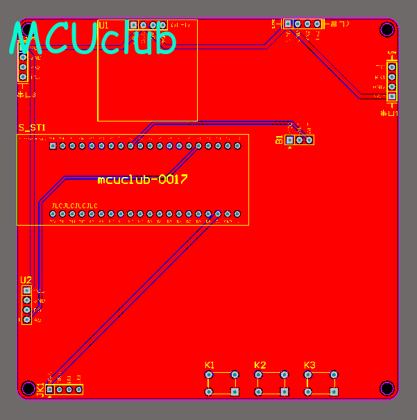 注意:PCB图中间有一个项目编号,隐藏在单片机底座下,插入单片机后不会看到。如果想截没有项目编号的PCB图,可在PCB源文件中点击删除。另外,如果想在实物PCB板上加自己的信息(比如日期、学号、姓名等),可联系客服。