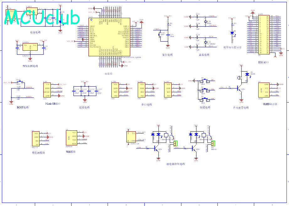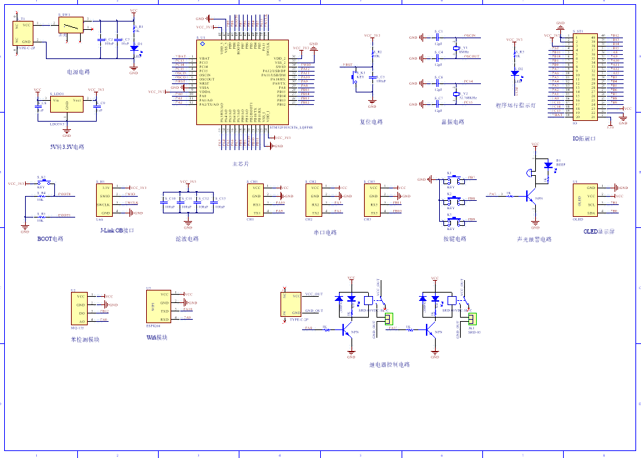 PCB图是由原理图导出,封装很大一部分都是作者自己绘制,不提供封装库,只提供连接好的源文件,可以直接在嘉立创进行打板。两层板,上下覆铜接地。