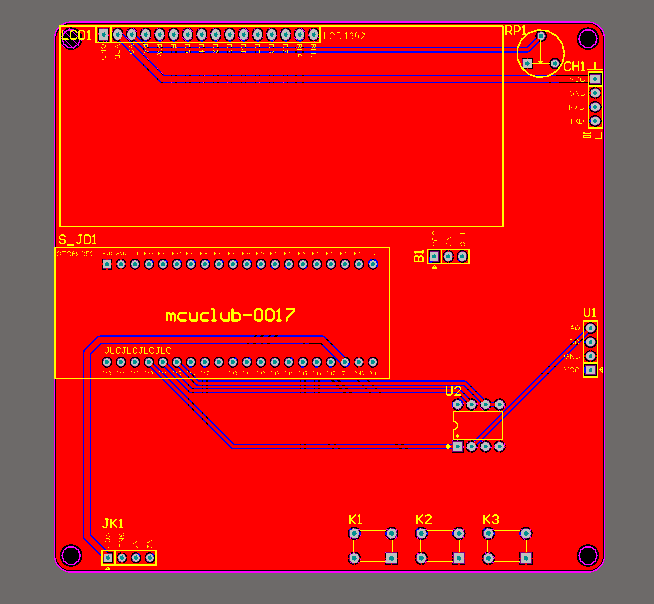 PCB图是由原理图导出,封装很大一部分都是作者自己绘制,不提供封装库,只提供连接好的源文件,可以直接在嘉立创进行打板。两层板,上下覆铜接地。