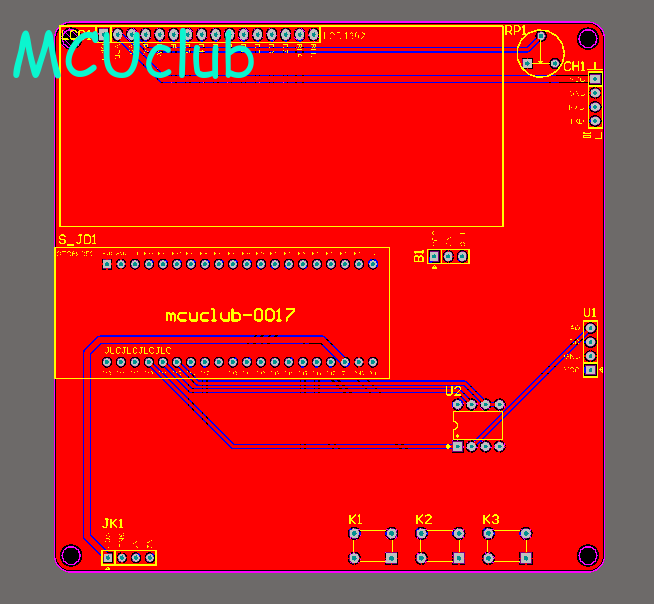 注意:PCB图中间有一个项目编号,隐藏在单片机底座下,插入单片机后不会看到。如果想截没有项目编号的PCB图,可在PCB源文件中点击删除。另外,如果想在实物PCB板上加自己的信息(比如日期、学号、姓名等),可联系客服。