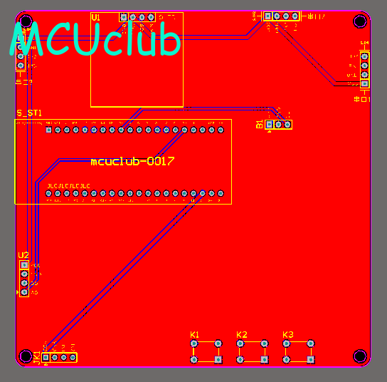 注意:PCB图中间有一个项目编号,隐藏在单片机底座下,插入单片机后不会看到。如果想截没有项目编号的PCB图,可在PCB源文件中点击删除。另外,如果想在实物PCB板上加自己的信息(比如日期、学号、姓名等),可联系客服。