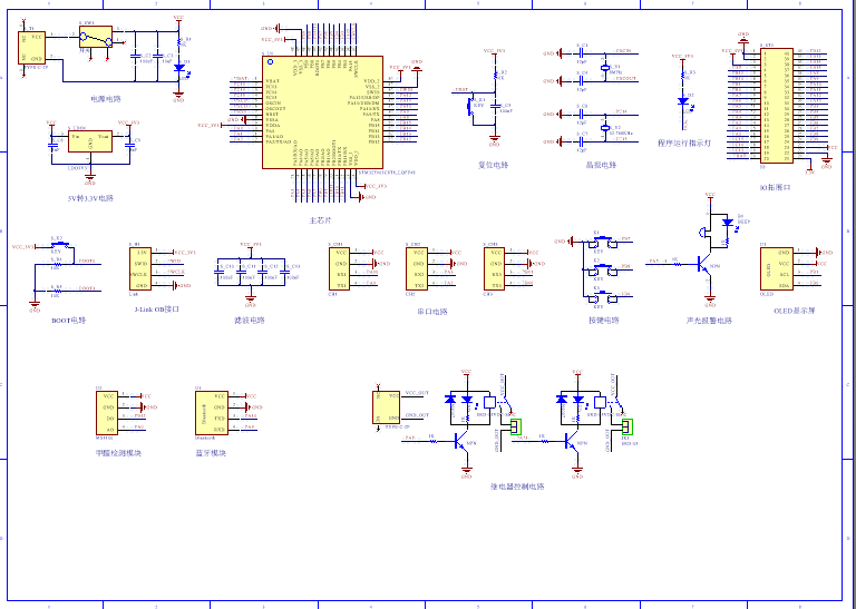 PCB图是由原理图导出,封装很大一部分都是作者自己绘制,不提供封装库,只提供连接好的源文件,可以直接在嘉立创进行打板。两层板,上下覆铜接地。