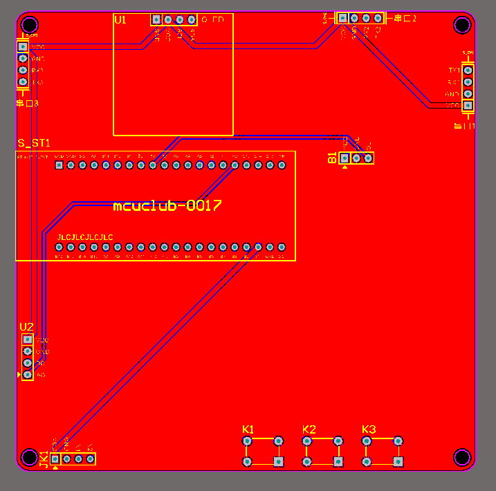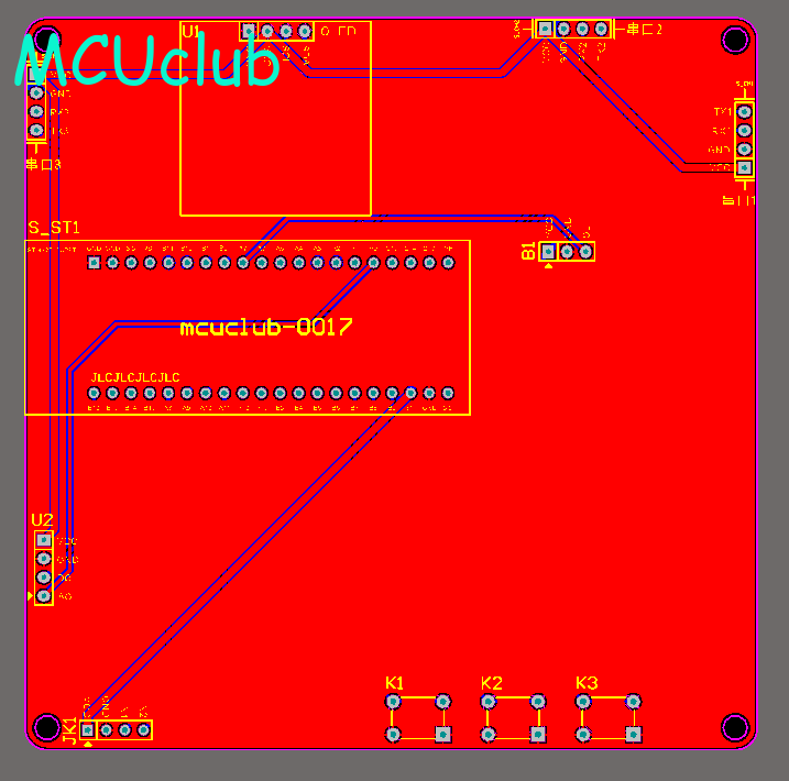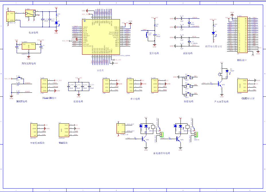 PCB图是由原理图导出,封装很大一部分都是作者自己绘制,不提供封装库,只提供连接好的源文件,可以直接在嘉立创进行打板。两层板,上下覆铜接地。