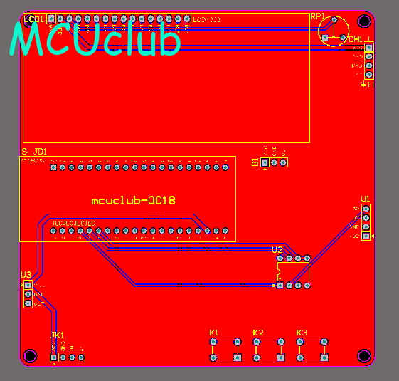 注意:PCB图中间有一个项目编号,隐藏在单片机底座下,插入单片机后不会看到。如果想截没有项目编号的PCB图,可在PCB源文件中点击删除。另外,如果想在实物PCB板上加自己的信息(比如日期、学号、姓名等),可联系客服。