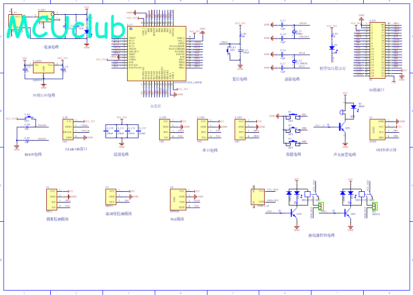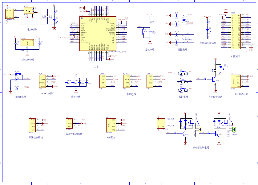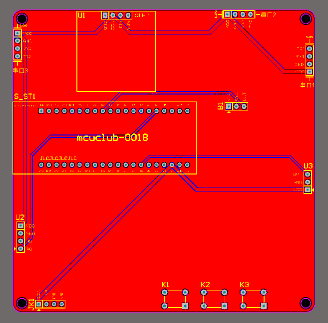 PCB图是由原理图导出,封装很大一部分都是作者自己绘制,不提供封装库,只提供连接好的源文件,可以直接在嘉立创进行打板。两层板,上下覆铜接地。