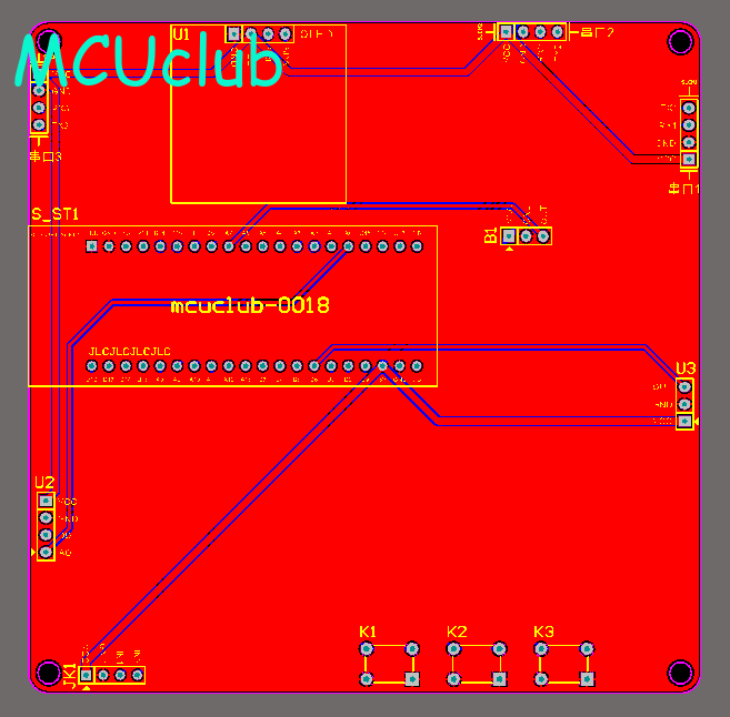 注意:PCB图中间有一个项目编号,隐藏在单片机底座下,插入单片机后不会看到。如果想截没有项目编号的PCB图,可在PCB源文件中点击删除。另外,如果想在实物PCB板上加自己的信息(比如日期、学号、姓名等),可联系客服。