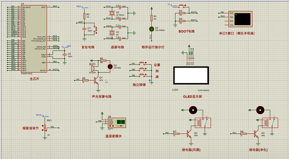 注意:部分实物元器件仿真中没有,仿真中会用其他工作原理相似的元件代替,这样可能导致实物程序和仿真程序不一样