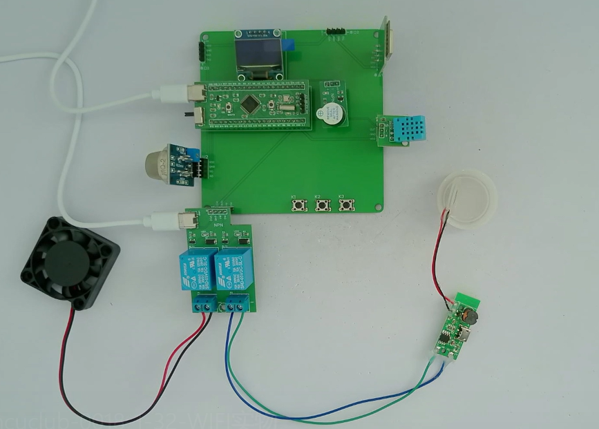 3、通过按键设置温湿度上下限值及烟雾最大值,另外,当烟雾值小于等于设置最大值时,可手动控制风扇或净化器开关