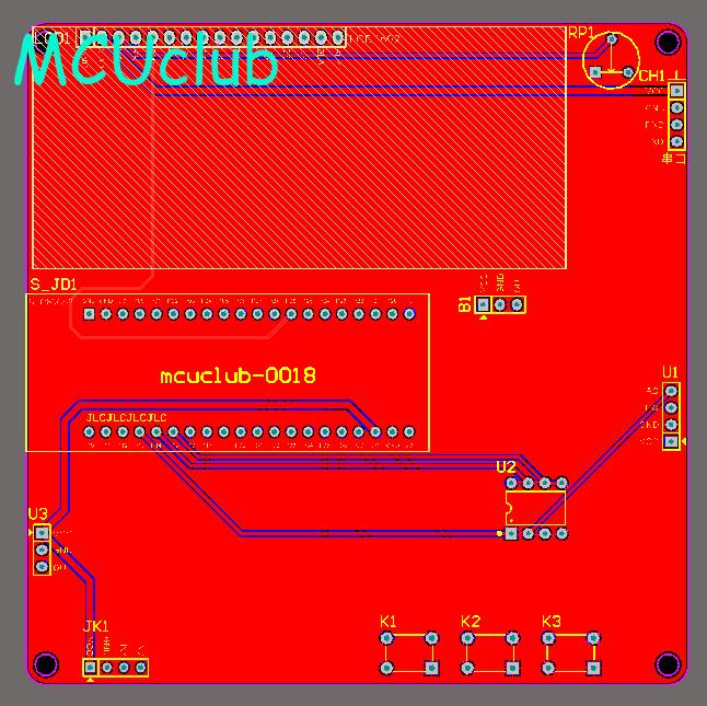 注意:PCB图中间有一个项目编号,隐藏在单片机底座下,插入单片机后不会看到。如果想截没有项目编号的PCB图,可在PCB源文件中点击删除。另外,如果想在实物PCB板上加自己的信息(比如日期、学号、姓名等),可联系客服。