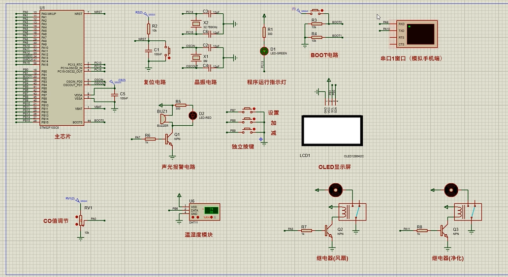 注意:部分实物元器件仿真中没有,仿真中会用其他工作原理相似的元件代替,这样可能导致实物程序和仿真程序不一样